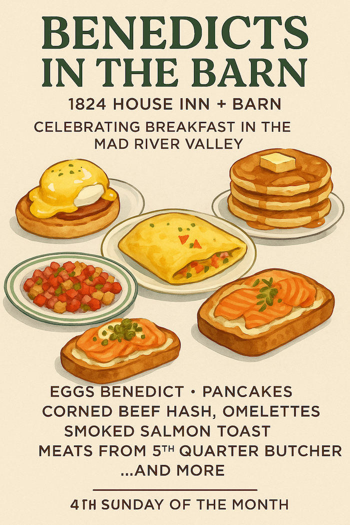 Join us on December 28th for Benedicts in the Barn—a delightfully rustic brunch experience set in our charming Vermont barn