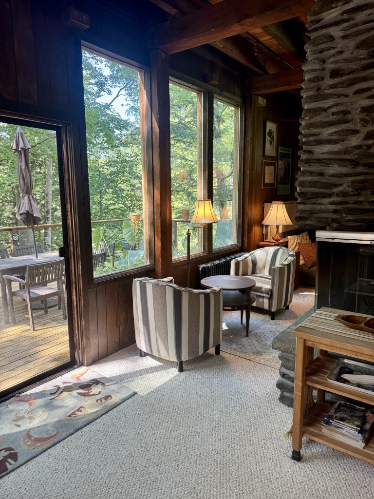 The Warren House features an open floor plan with fully stocked kitchen, dining room table for a group and seventies style sunken living room around four sided fireplace. We sleep fourteen guests with five bedrooms and three bathrooms. The property has a large lawn with gardens, covered patio space and large back deck by the Mad River. Looking for a venue for your wedding or event make sure to check out our space. We would love to work with you to create your prefect getaway! Scaled pricing to fit your groups needs and budget.