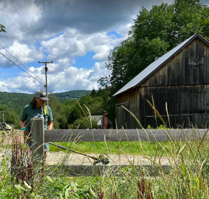What do you do as a steward? I keep the Chase Brook parking lot, McCullough Barn, and trailhead clear of trash. I change the bags in the garbage can. I weed whack to help keep the space inviting for visitors. I prune the berry bushes back from the trails. And I pull knotweed to help mitigate its spread in the area. (My husband Tom sometimes helps!)
